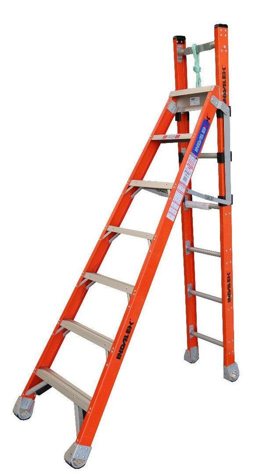 INDALEX 16ft (4.9m) Industrial Fibreglass 150KG Pro Series Double Sided Step Ladder