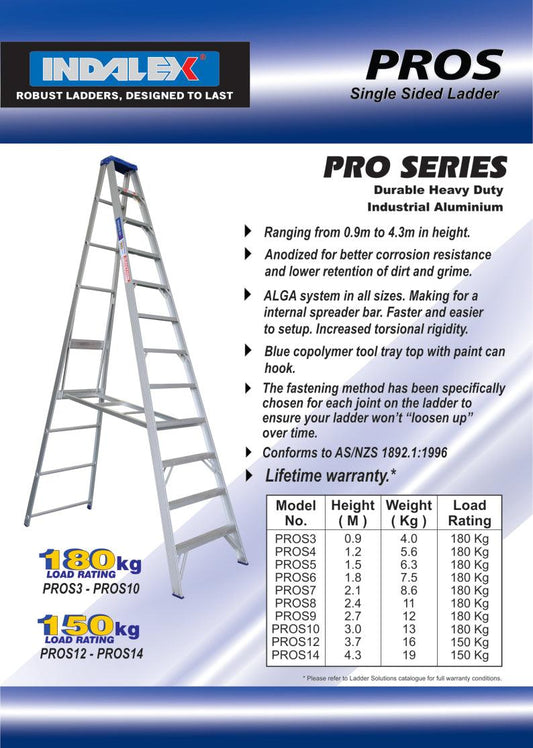 INDALEX 8ft (2.4m) Industrial Aluminium 180KG Pro Series Single Sided Step Ladder